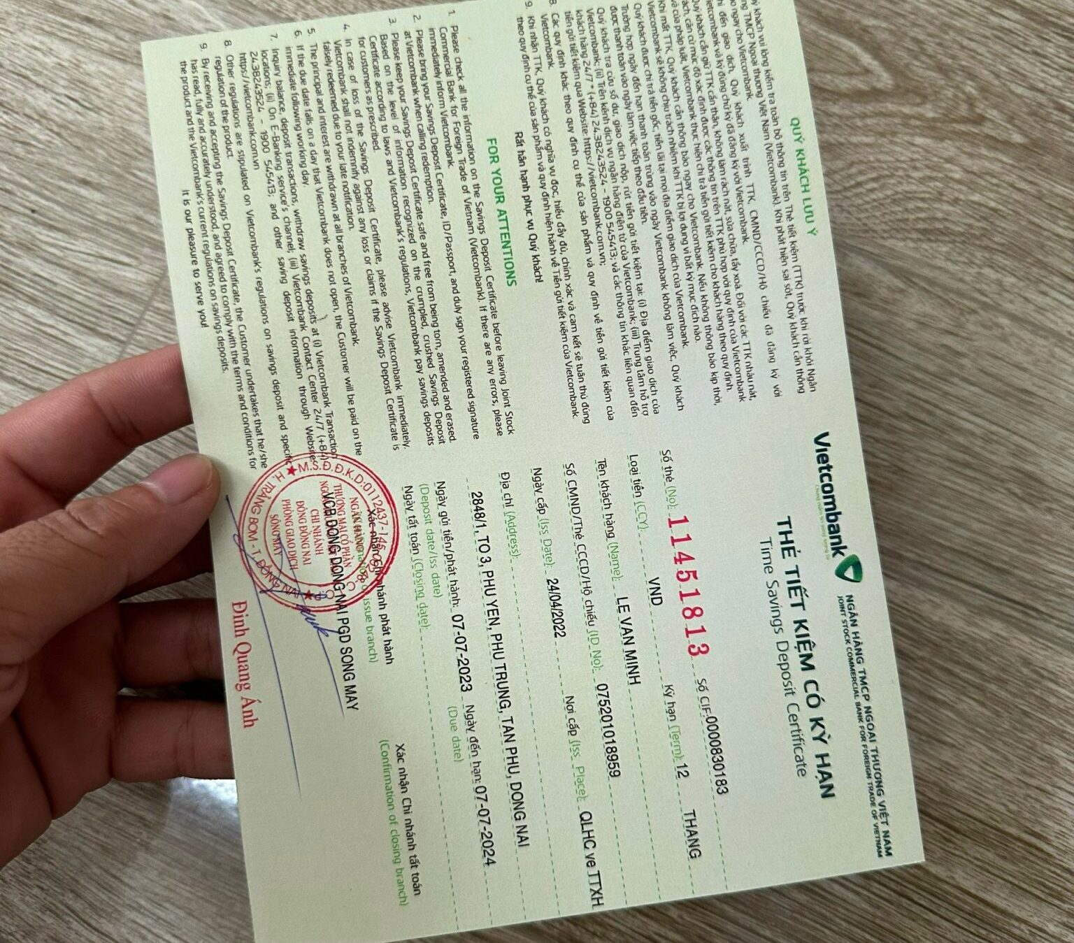 • CMND/ CCCD.